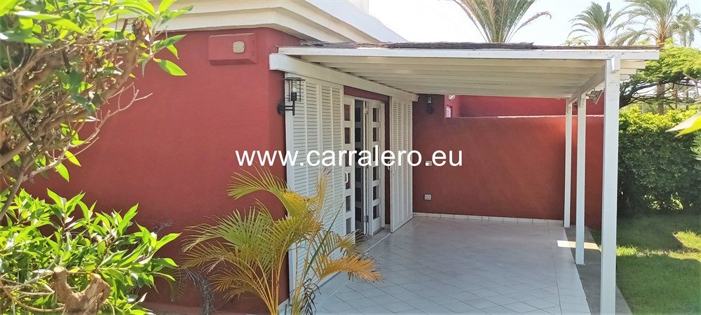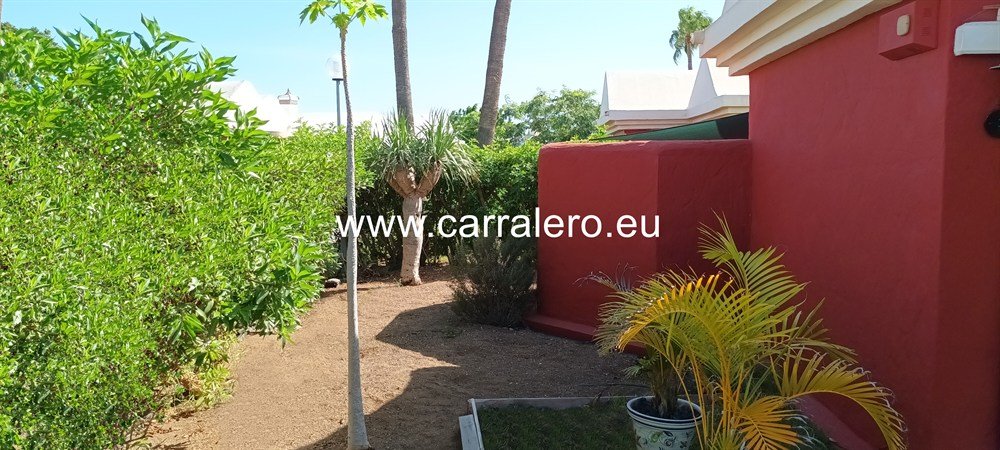 Carralero Inmobiliaria vende en exclusivo un bungalow con bonita terraza y un gran jardín privado en un complejo tranquilo, con cuidadas zonas verdes y dos piscinas comunitarias nuevas en el campo de golf de Maspalomas.