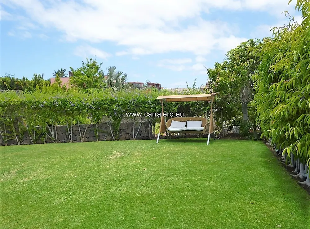 En el jardín de la casa hay varias áreas cubiertas y una gran terraza con la mejor vista al campo de golf. Una piscina privada climatizada, jacuzzi, un gran jardín y un garaje privado que completan el concepto.